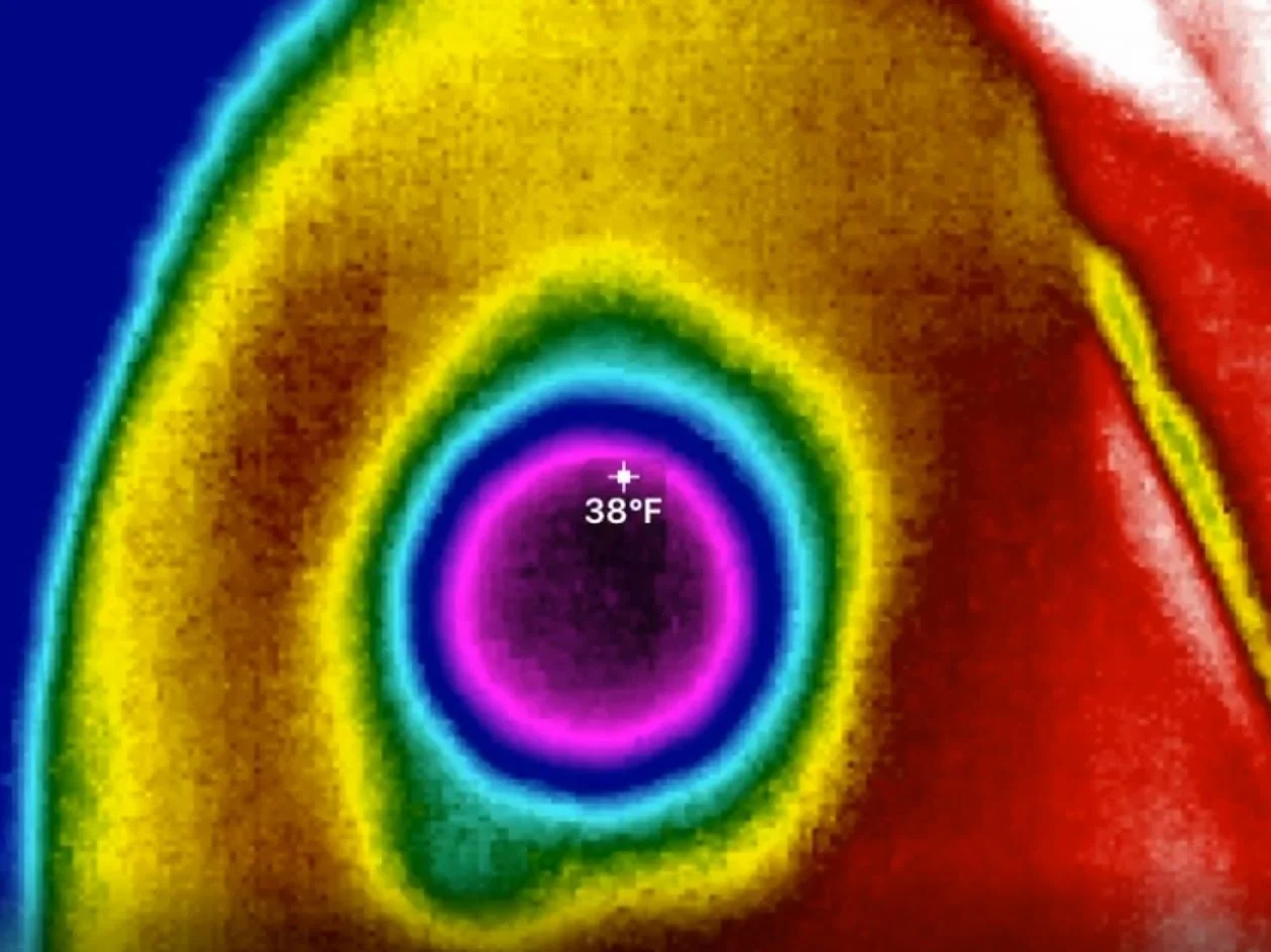 Thermal image of skin cooling left by Kool Shield on the right shoulder.